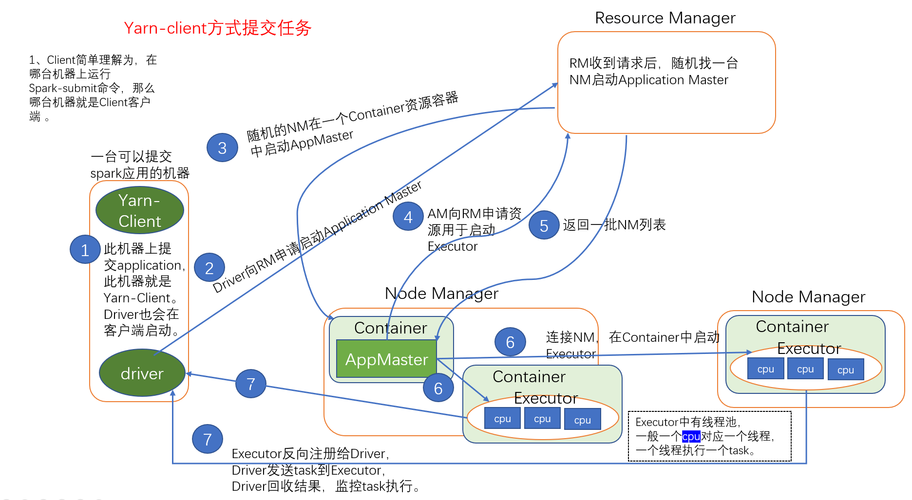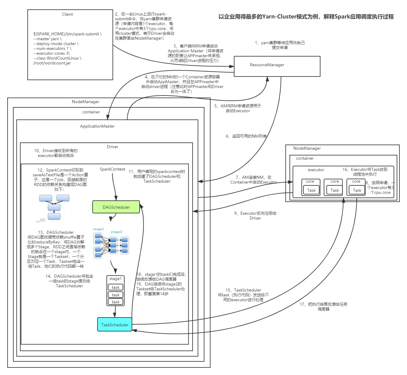 - DAGScheduler继续将剩下的Stage发送给TaskScheduler,重复循环,直至完成