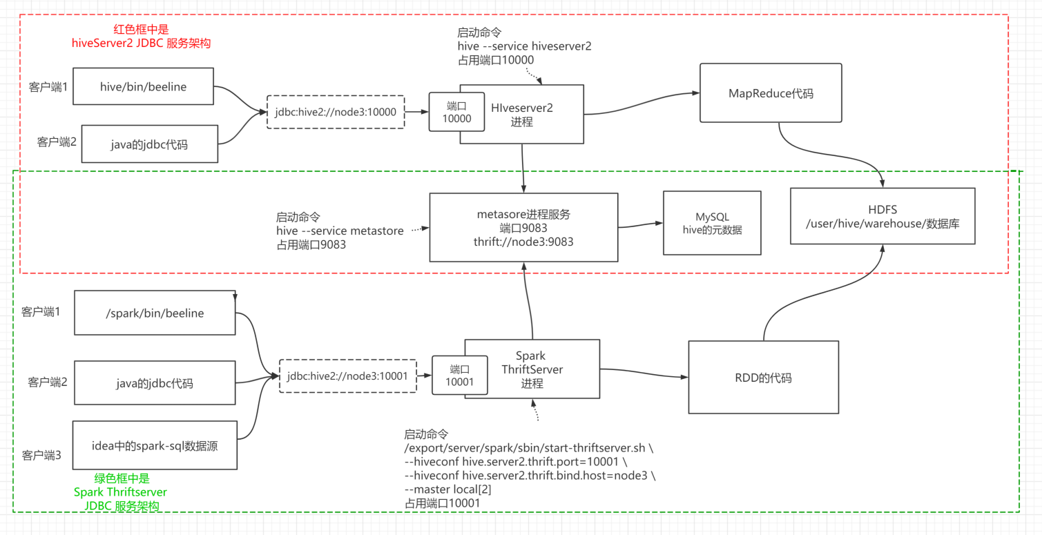 Spark Thriftserver hiveserver2 metastore beeline 的关系