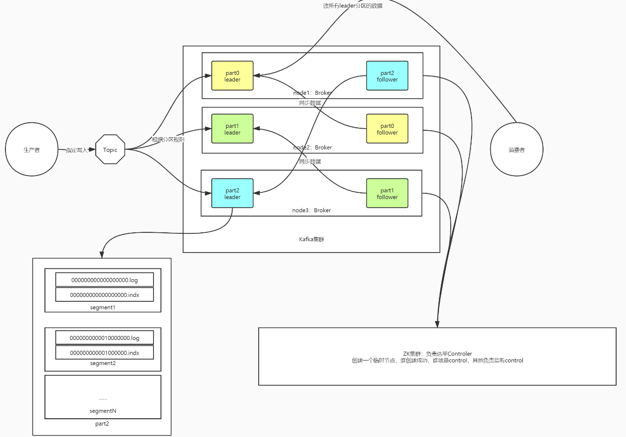 - 管理所有从节点,Topic,分区,副本
