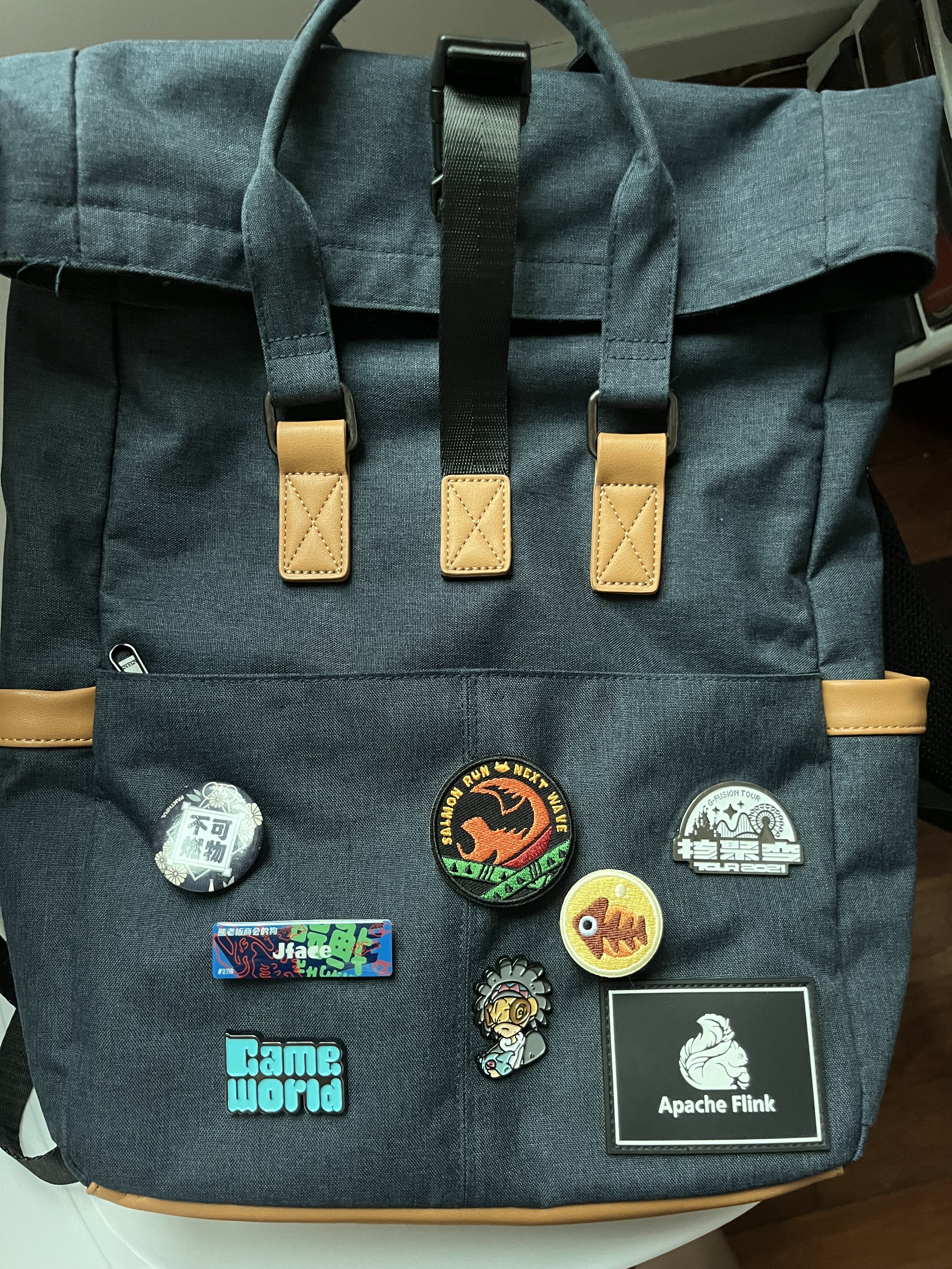 铭牌跟鱼蛋徽章都是@贴牌小铺🦑冷店长,斜挎包是@tomtoc-official 定制的